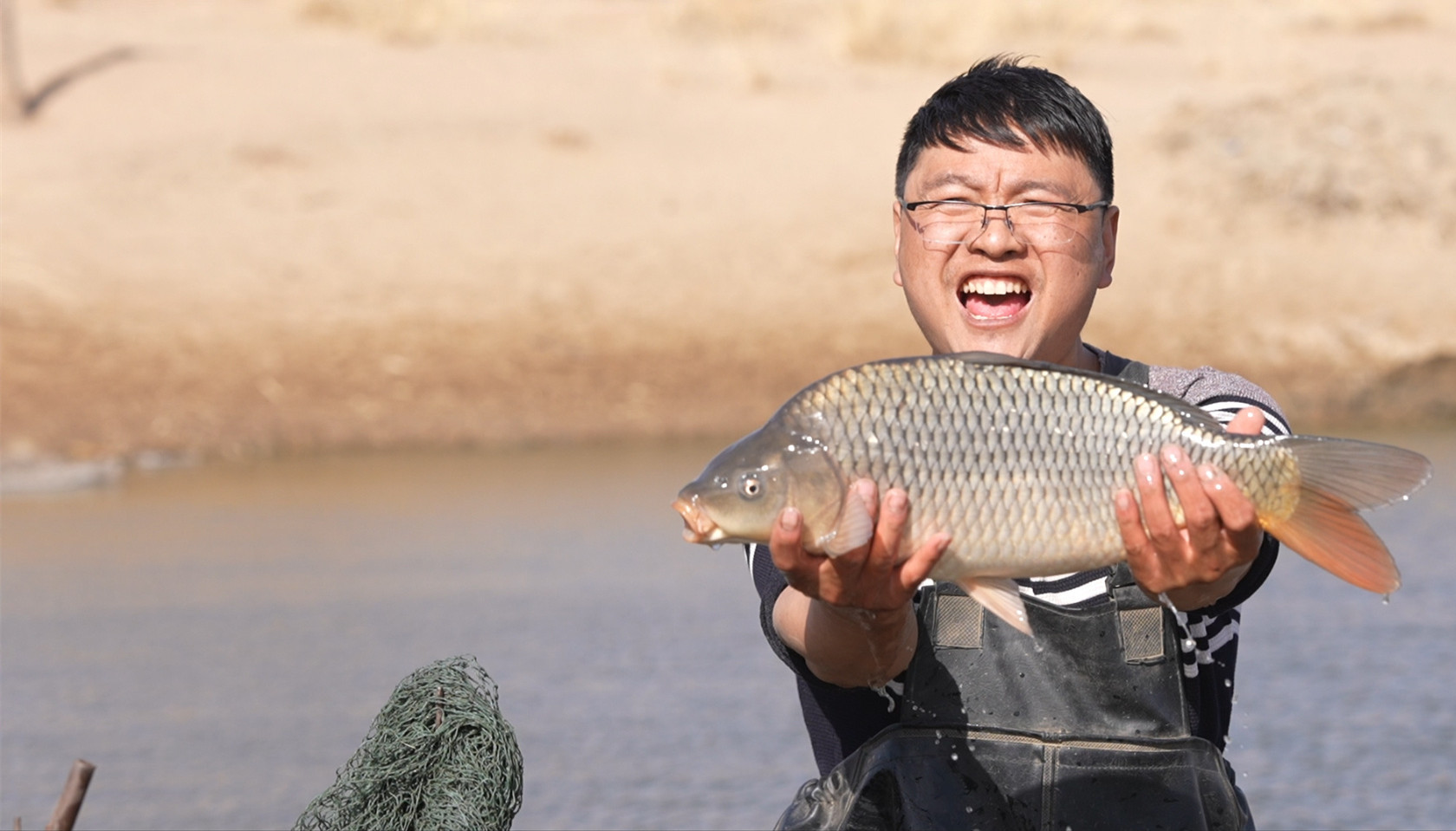 打鱼归来的刘涛。(来源:包头稀土高新区新闻中心)