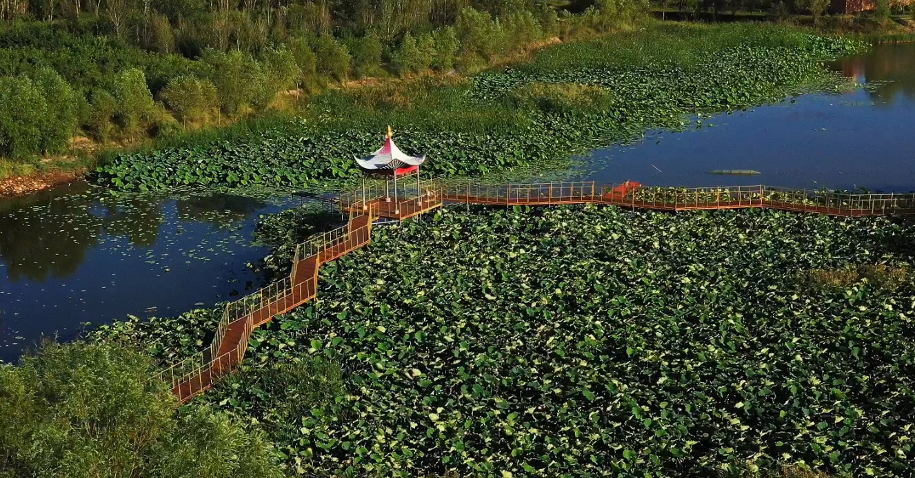 哈哈乐庄园30亩荷花池。(来源:包头稀土高新区新闻中心)