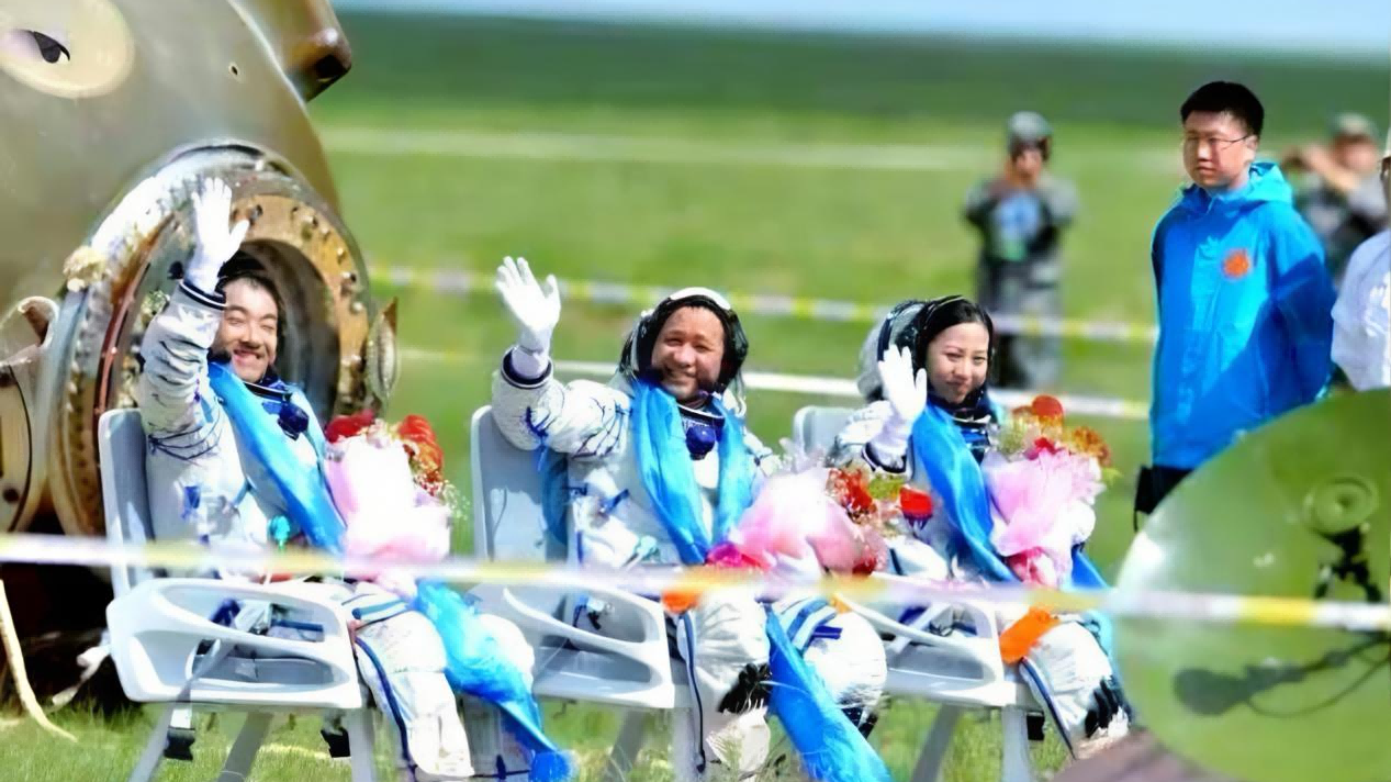 “神舟十号”返回舱顺利着陆,航天员挥手致意。(摄影:新华社记者 任军川)