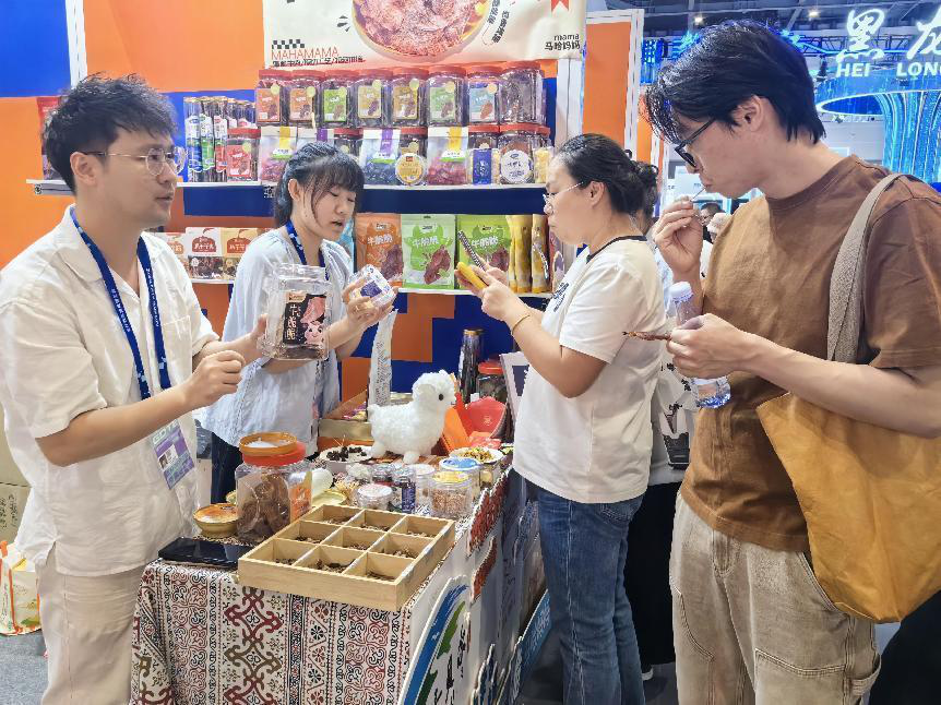 “展会上午就碰到了好的合作机会!湖南商会的代表尝了我们的产品后,特别满意,当场就说想合作,打算把湖南的优质牛肉交给我们加工,用我们成熟的草原食品加工技术做特色产品。”该公司上海旗舰店总经理石昊表示,此次参展的核心目标,就是要多对接数字领域企业、学习数字化推广经验,未来计划通过线上渠道进一步拓宽销路,让更多消费者能通过数字平台便捷地买到正宗内蒙古特色食品。