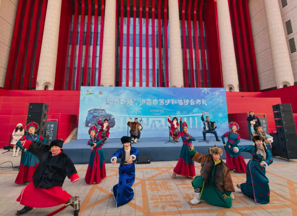 室外,“融合之路”冰雪自驾呼和浩特会师礼暨发车仪式更添豪情。来自三省区的自驾车队整齐列队,引擎轰鸣间满是奔赴山海的期待。授旗仪式后,车队分批驶向山西、河南及呼伦贝尔,以沉浸式自驾形式宣传推广线路文化,为这场文旅盛会注入了蓬勃活力。