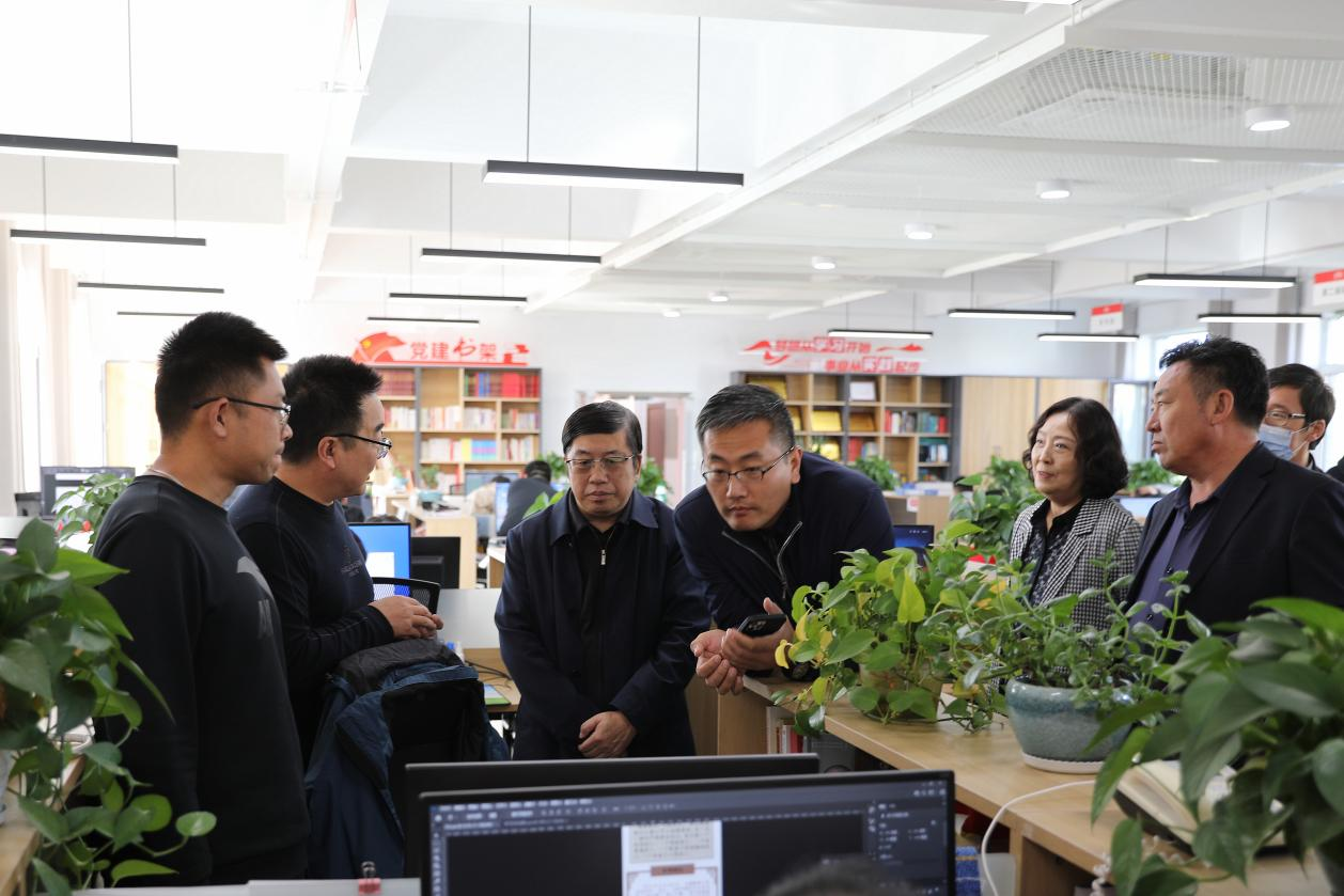自治区党委宣传部副部长、文明办主任王晓平参观实践杂志社融媒体中心。