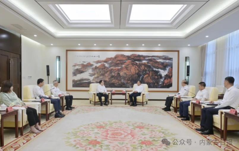 7月24日,自治区党委书记孙绍骋在呼和浩特会见香港大公文汇传媒集团董事长李大宏。草原云·内蒙古新闻网记者 马建兵 摄
