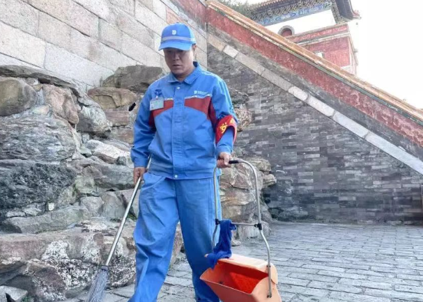 这名保洁员名叫张旭,在颐和园从事保洁工作已经两年了。