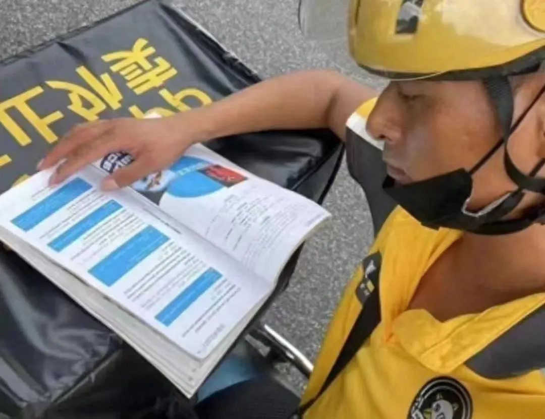 退伍后,他成为一名外卖员,工作虽然很辛苦,但他依然没有放弃过学习英语。