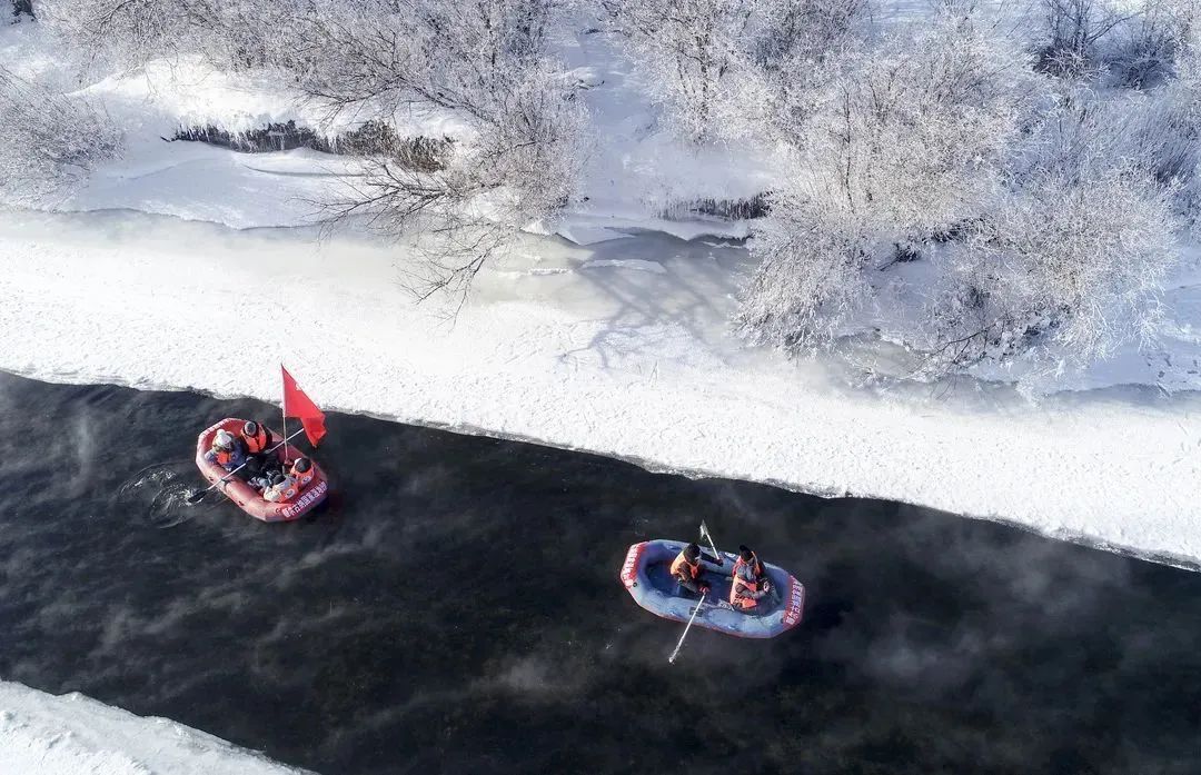 游客在内蒙古额尔古纳国家湿地公园内的不冻河体验漂流。(摄影:王正)