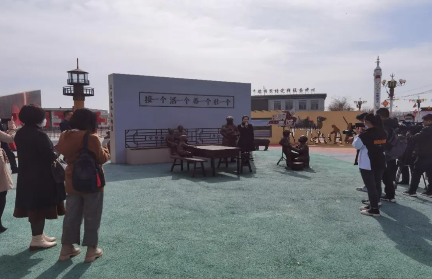 乌兰夫纪念馆讲解员依托村头星火广场进行宣讲。(图片来源:思想政治工作研究微信公众号)