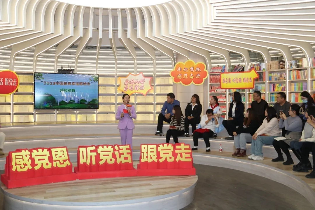 “感党恩、听党话、跟党走”“青城之光”理论宣讲团“身边人讲身边变化”示范宣讲报告会上,宣讲员通过微宣讲的形式讲述呼和浩特的发展变化。(图片来源:思想政治工作研究微信公众号)