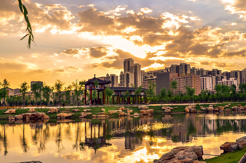 《晚霞中的丝绸公园》赵秀玲摄于丝绸公园