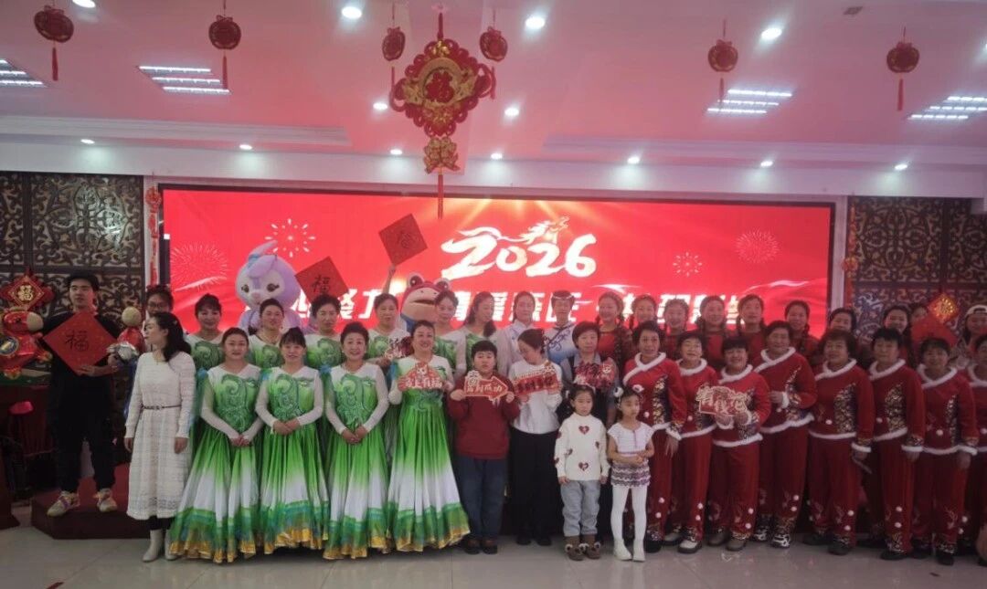 “社区春晚”演出结束后居民们一起合影。(图片来源:森旺社区党群服务中心)