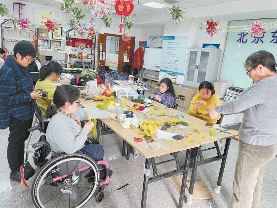 为了确保每一位残障朋友都编织出符合标准的花束,150位参与者,几乎每位都由刘晓云面对面、手把手教授。两个半月的花束编织过程中,刘晓云的脚步踏遍了150位残障朋友所在的10个区,最远到了100多公里外的延庆。