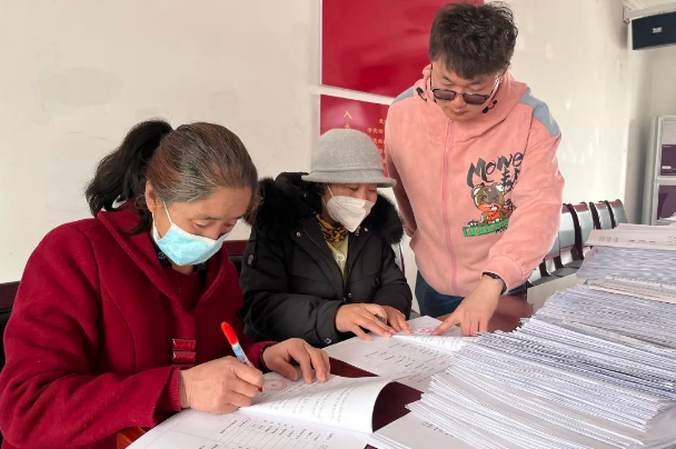 郭福祥协助牧民填写信息表。(摄影:魏婧仪)