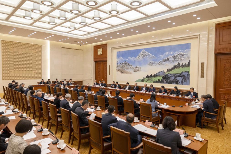 3月7日上午,第十四届全国人民代表大会财政经济委员会召开全体会议,根据各代表团和有关的专门委员会的审查意见,对国务院提交十四届全国人大二次会议的2024年计划报告和计划草案、预算报告和预算草案进行审查。新华社记者 费茂华 摄
