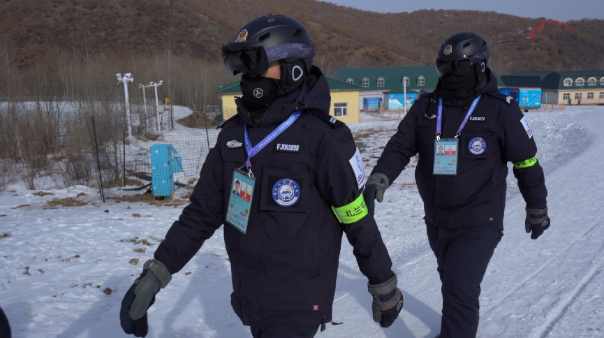 天还未大亮,几抹蓝色身影便出现在滑雪场中,他们手持探针,逆风在雪道两边前行,确保比赛场地的安全万无一失。“金龙山滑雪场占地总面积15万平方米,地理位置特殊、地形环境复杂,我们每天都要在这个时间点对比赛场的重点区域进行安检。”扎兰屯市公安局反恐怖和特巡警大队副大队长、雪警队队长王超说。雪警队员就像夜空中最亮的星,映照在皑皑白雪上,留下了让人难忘的印记。