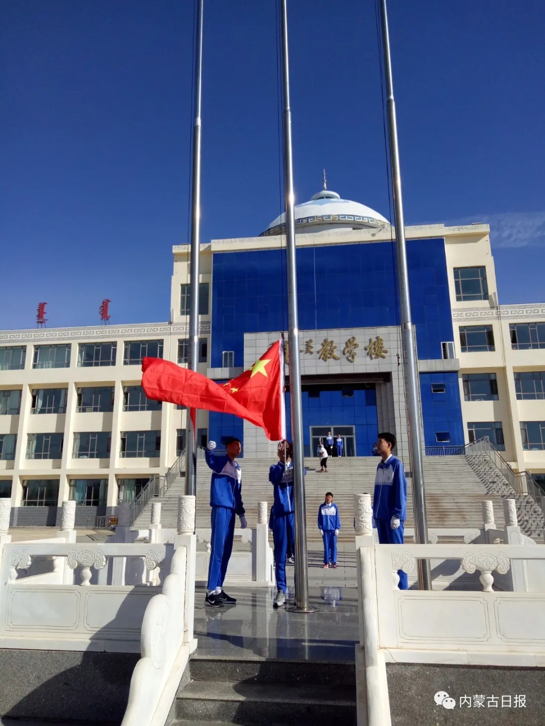 9月8日,巴彦淖尔市乌拉特中旗蒙古族学校举行升国旗仪式,师生们齐聚于国旗周围,高唱国歌,向伟大祖国致敬,迎接第36个教师节的到来。