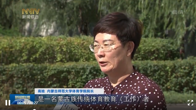 内蒙古师范大学体育学院院长高娃:“我作为一名无党派人士, 是一名蒙古族传统体育教育者。蒙古族传统文化它体现着一个崇尚自然关爱生命和谐共生的这么一个生态伦理观,我们要珍惜,我们要传承,要让更多的人了解这样的优秀文化,真的是需要有一个国家通用语言(文字)去传承”。