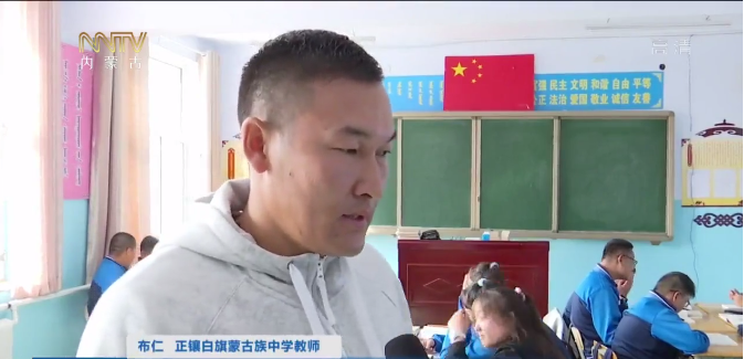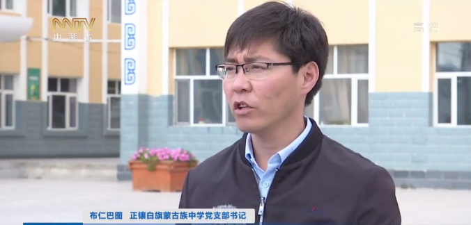 正镶白旗蒙古族中学党支部书记布仁巴图:“通过学生在国旗下的讲话,让学生们从小就培养起爱党、爱国、爱家乡,激发师生为实现中华民族伟大复兴而努力。”
