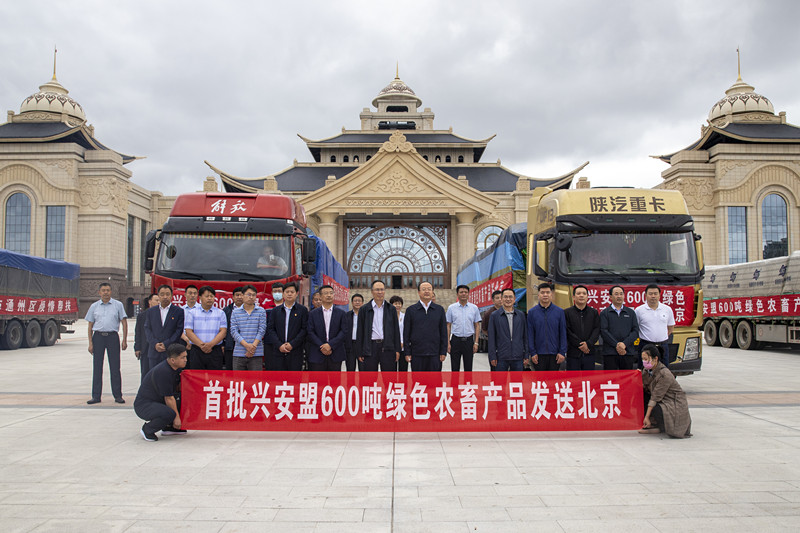 6月24日10点30分,在京蒙两地一家亲的浓厚氛围中,内蒙古自治区兴安盟优质绿色农畜产品进北京发车仪式在乌兰浩特市举行。伴着隆隆作响的汽车发动机声,首批600吨满载着兴安儿女深情厚谊的优质绿色农畜产品发往北京,为北京人民送去最诚挚的节日问候。兴安盟委委员、副盟长张国平,盟委委员、副盟长、北京市挂职干部孟文涛,盟行署副盟长刘树成出席发车仪式,北京市挂职帮扶兴安盟旗县市领导,乌兰浩特市分管商务工作副市长,盟直有关部门和各旗县市商务局主要负责人及生产企业代表参加仪式。