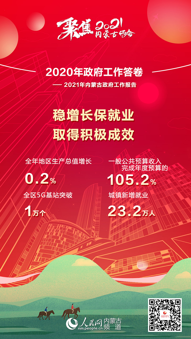 1月26日上午,内蒙古自治区十三届人大四次会议在内蒙古人民会堂开幕。自治区主席布小林作政府工作报告。2020年是极不平凡的一年,内蒙古紧扣全面建成小康社会目标任务,坚持稳中求进工作总基调,坚持以人民为中心,科学统筹疫情防控和经济社会发展,扎实做好“六稳”工作,全面落实“六保”任务,全区经济持续回稳,社会大局和谐稳定,“十三五”规划顺利收官。2020年政府工作有哪些亮点?看内蒙古书写这份精彩答卷!